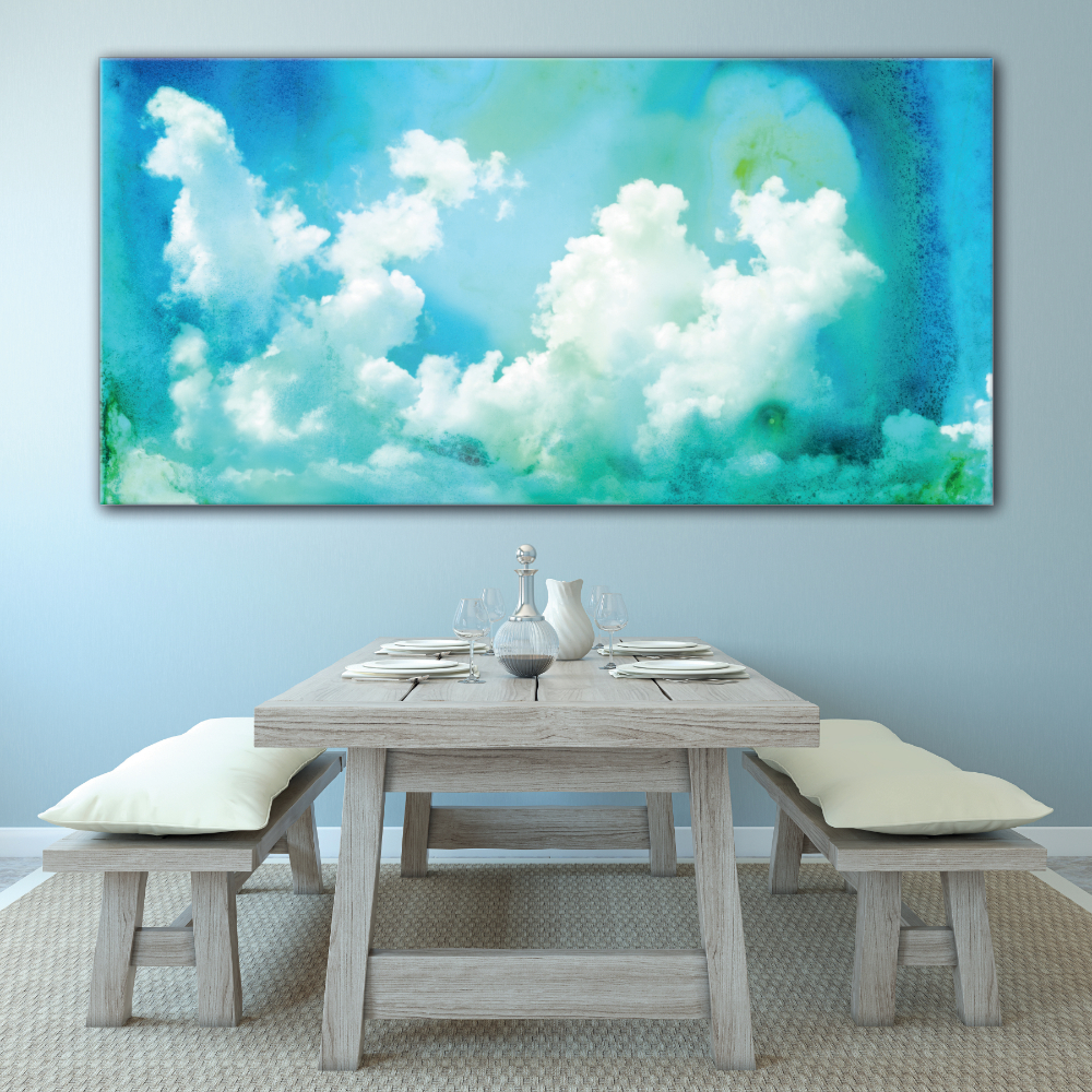 Este cuadro es un viaje al universo abstracto, queremos crear una sensación de belleza y calma, con la fusión de colores y formas, sobre una superficie plana. En efecto, con este “cuadro nubes abstractas” pondrá una nota de color y luz en su interior.