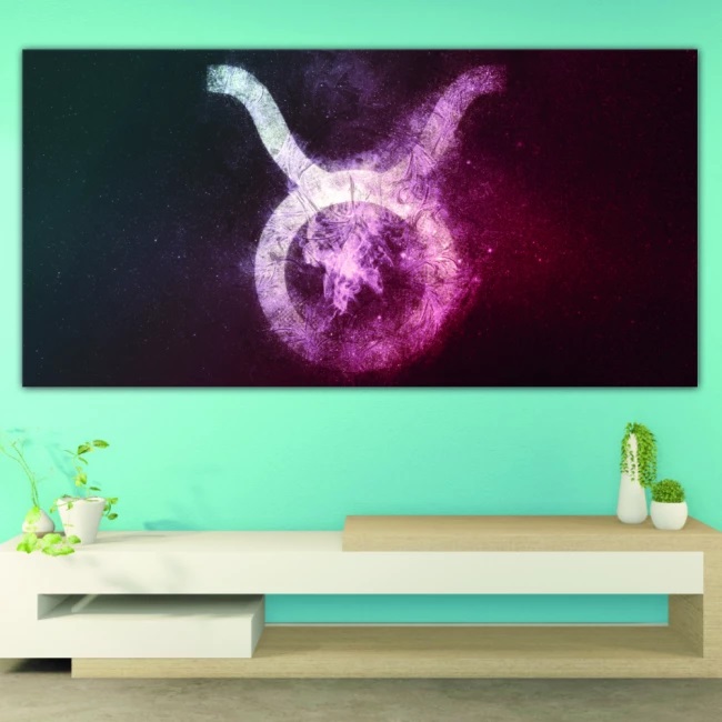 Trae a tu casa algo de la magia y el misterio del universo y las constelaciones astrales con este moderno cuadro de salón con el símbolo del toro en medio del infinito interestelar.