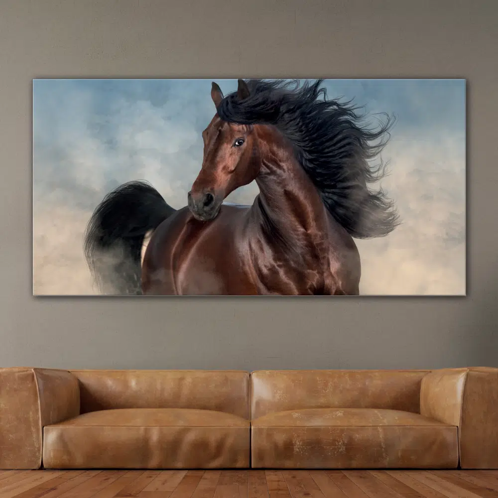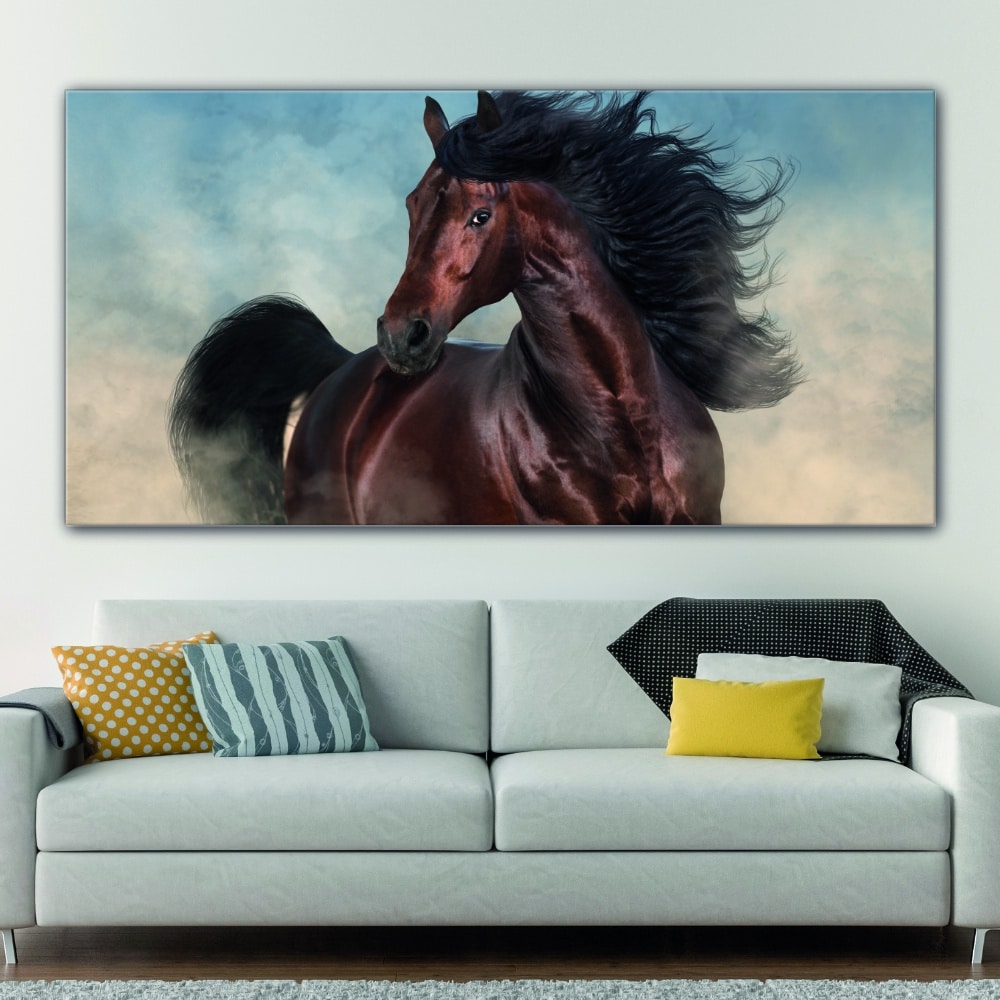 Este caballo es magnífico. En efecto, su pelaje es elegante y hermoso. Los mustangs son caballos duros y resistentes. Son muy frugales para soportar cualquier clima. Con este “cuadro caballo mustang” aporta carácter a tu hogar Con este cuadro podrás exponer tu pasión y apego a tu hogar.