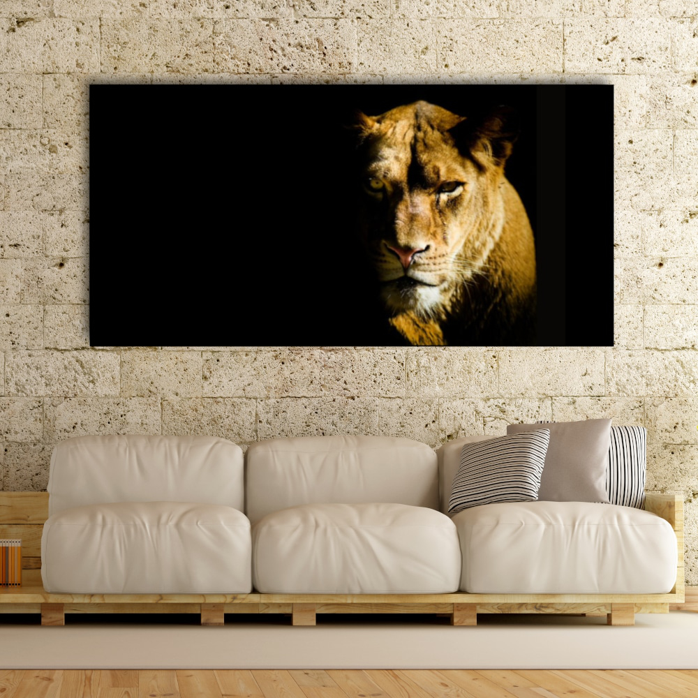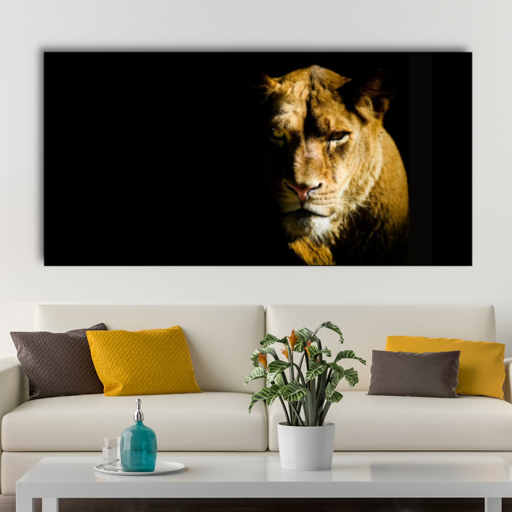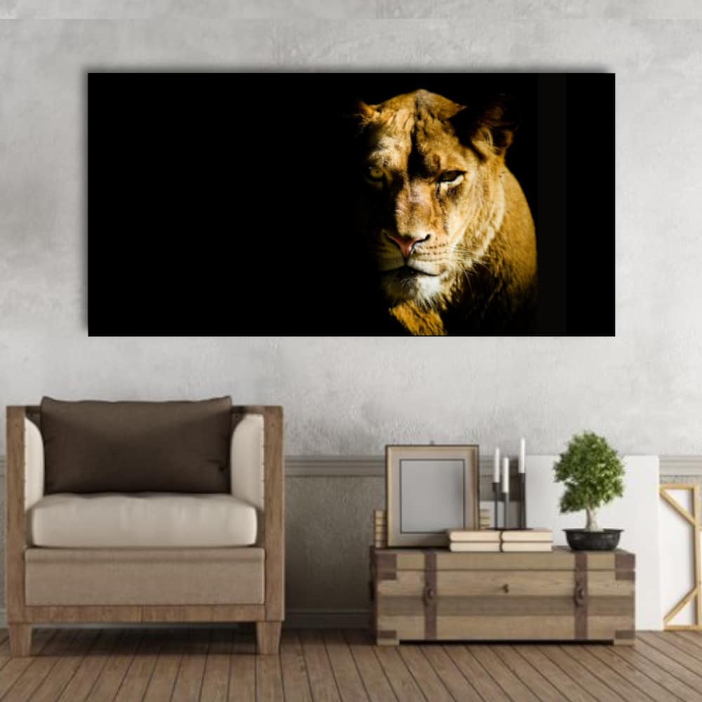 El cuadro Leona poderosa es un cuadro elegante que le hará pensar en África, el león, el valor, la libertad y el poder. Nuestro poderoso cuadro de la leona es un símbolo de la fuerza femenina y del instinto maternal. También representa el amor y la pasión que pueden ofrecer las mujeres.