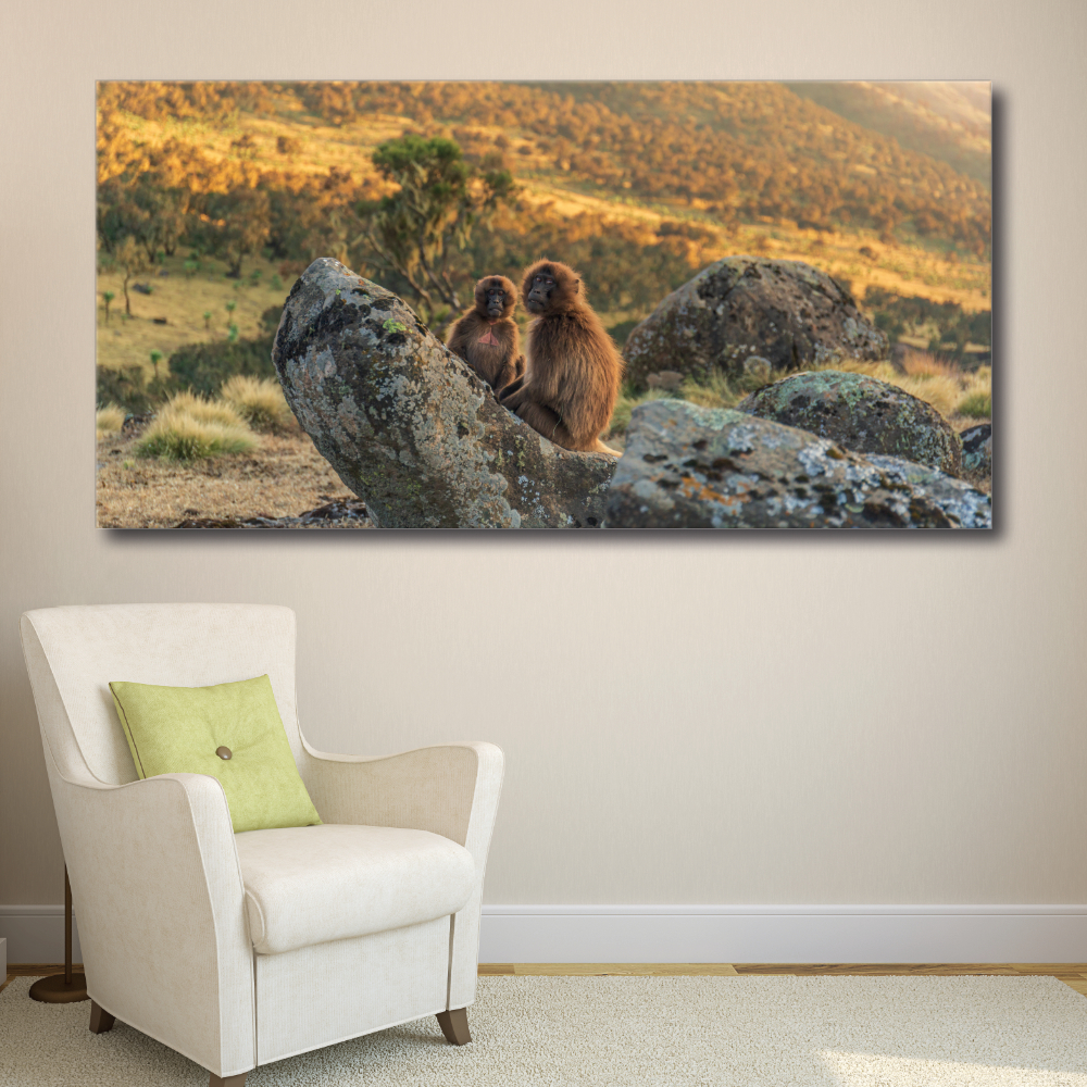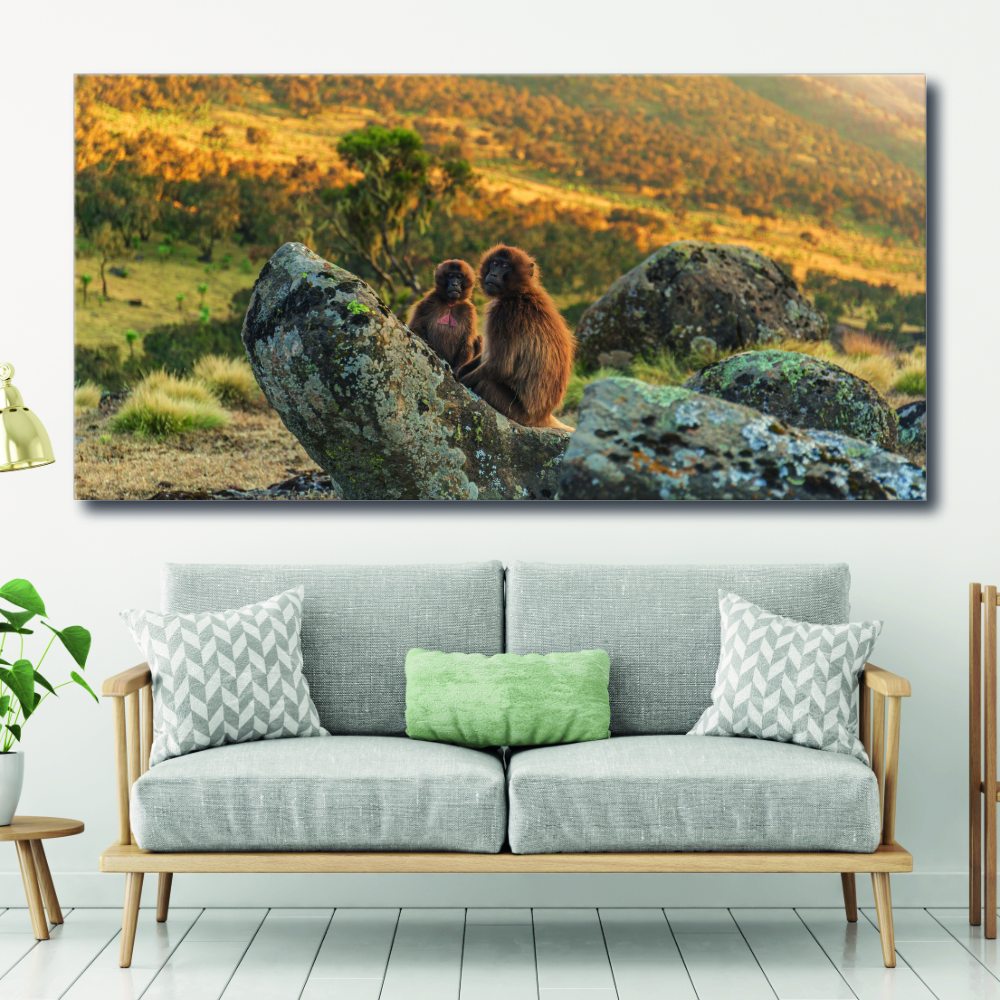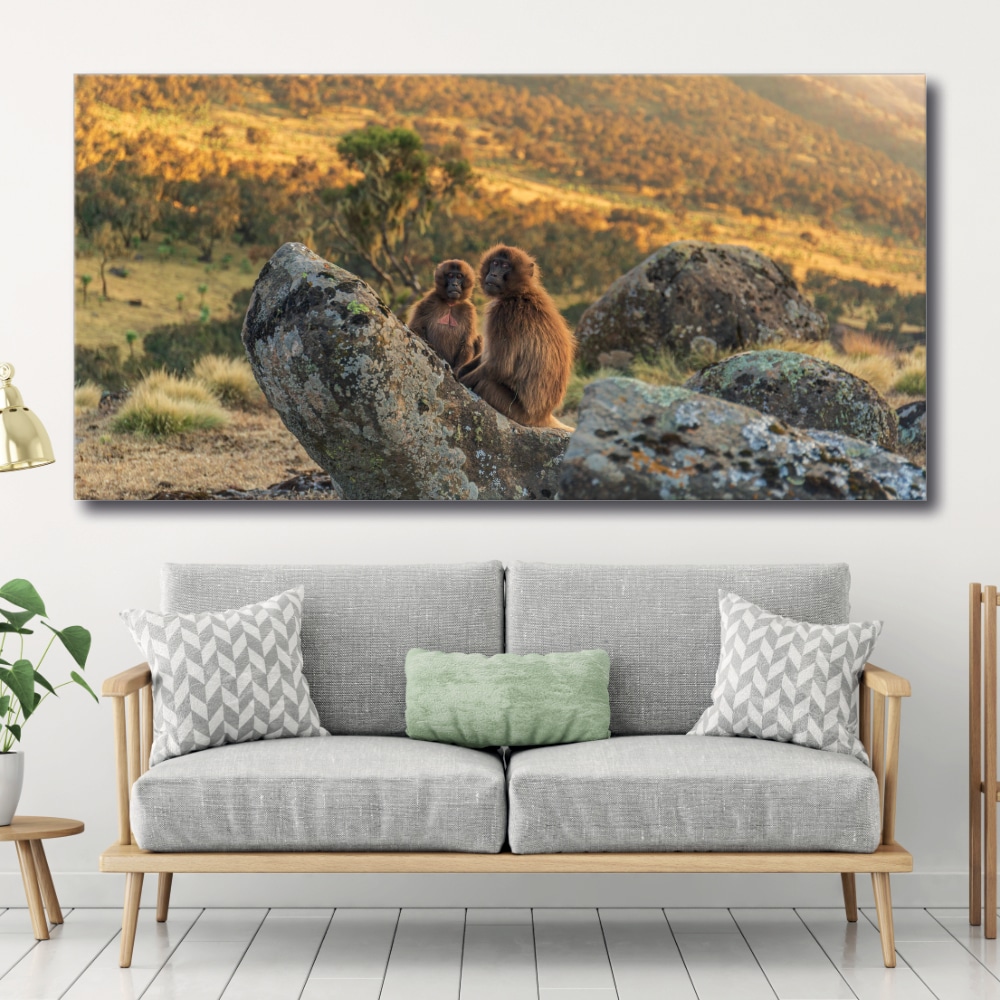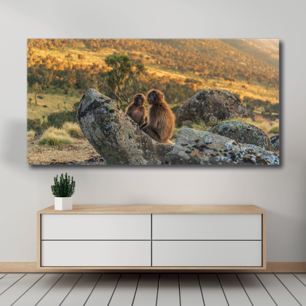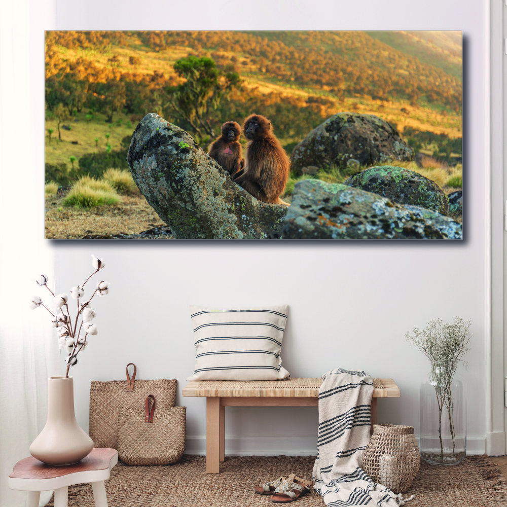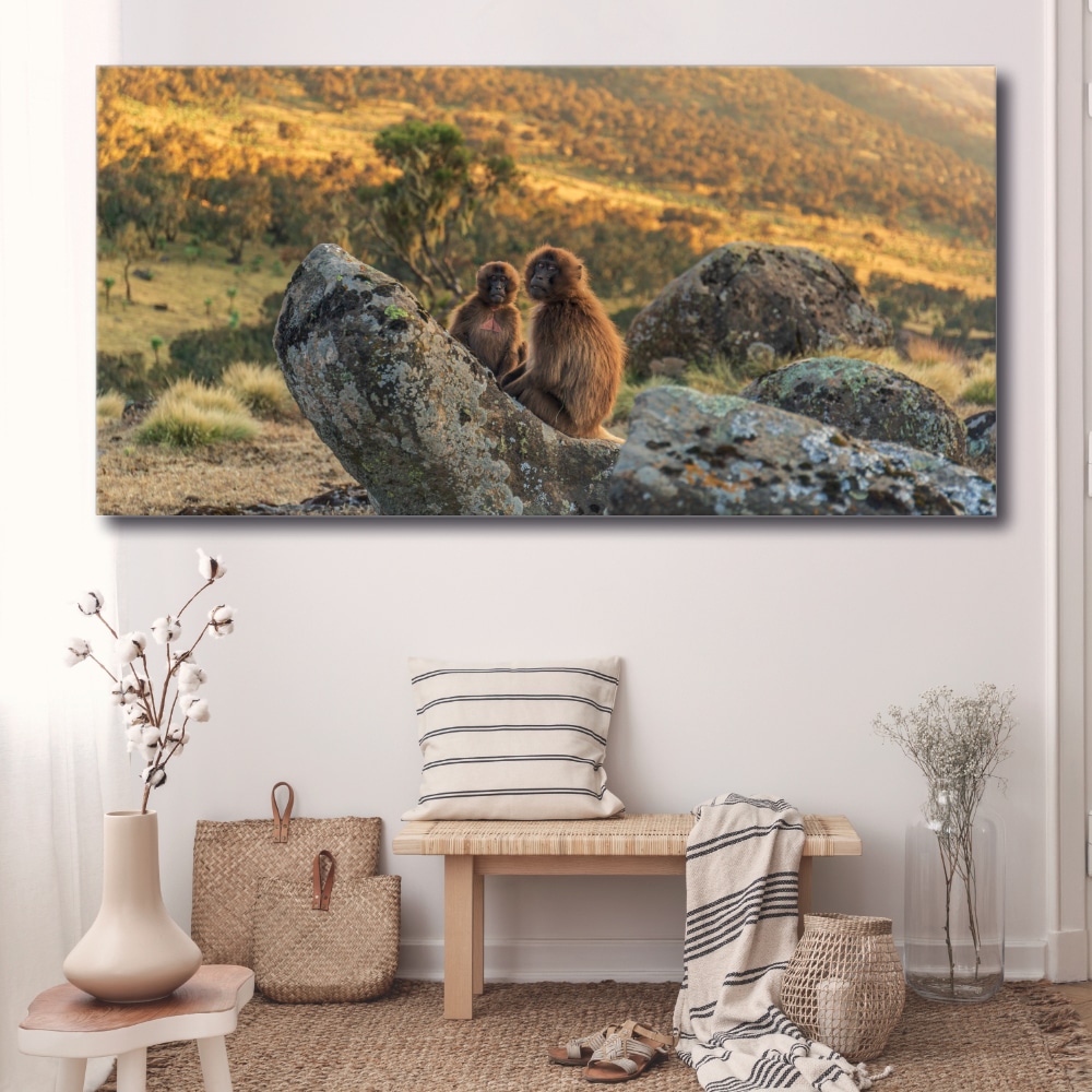 Sumérgete en el corazón de esta sabana con dos monitos, y recupera en medio de esta inmensidad! Estás con ellos, en este momento íntimo y tranquilizador.