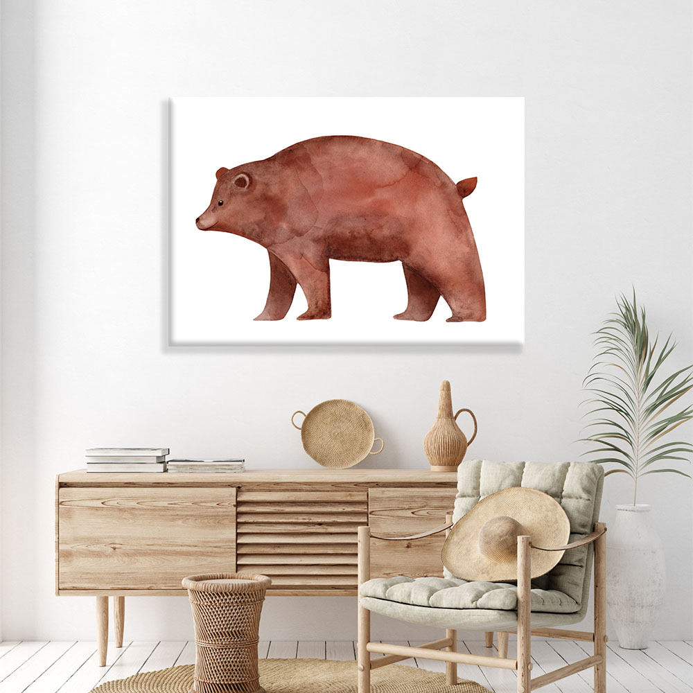 Este cuadro de salón moderno representa otra figura del oso, la de la calma y la suavidad. Este oso de mirada tranquila transmite un ambiente relajado y casi infantil.