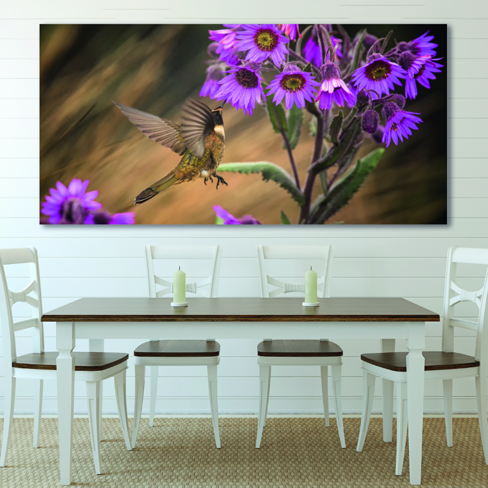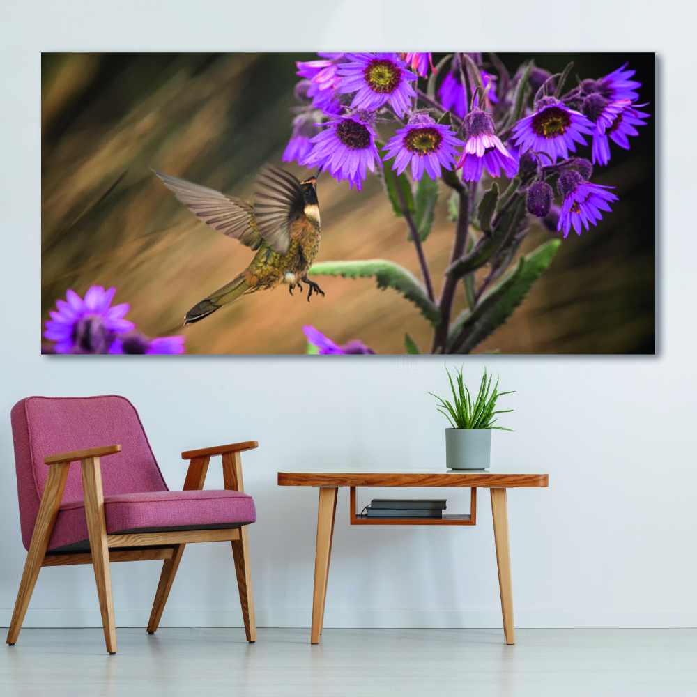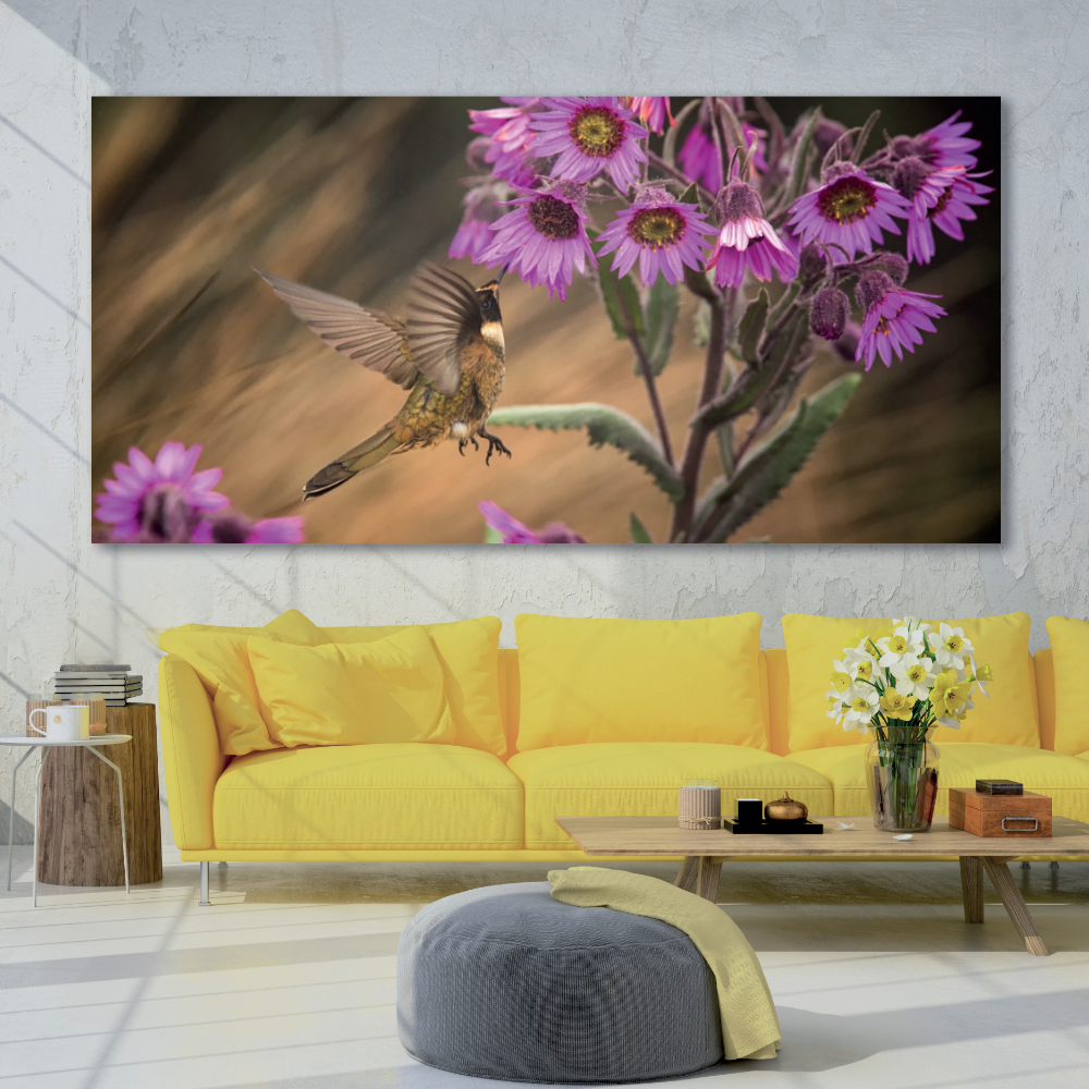 El colibrí es conocido por ser un símbolo del tiempo y del amor. ¿Lo sabías? Este pajarito es capaz de volar hacia atrás, Además gracias a este activo le han asociado la alegría de vivir y la ligereza de ser. Con este cuadro moderno para el salón, ponga un poco de vida en su interior.