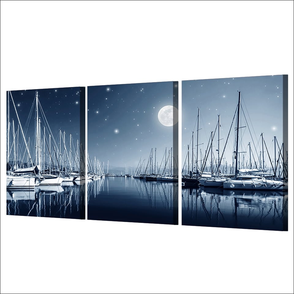 Sueña que paseas por este puerto en una noche de luna llena. El camino está perfectamente despejado, iluminado por la luna, se pueden admirar los barcos.