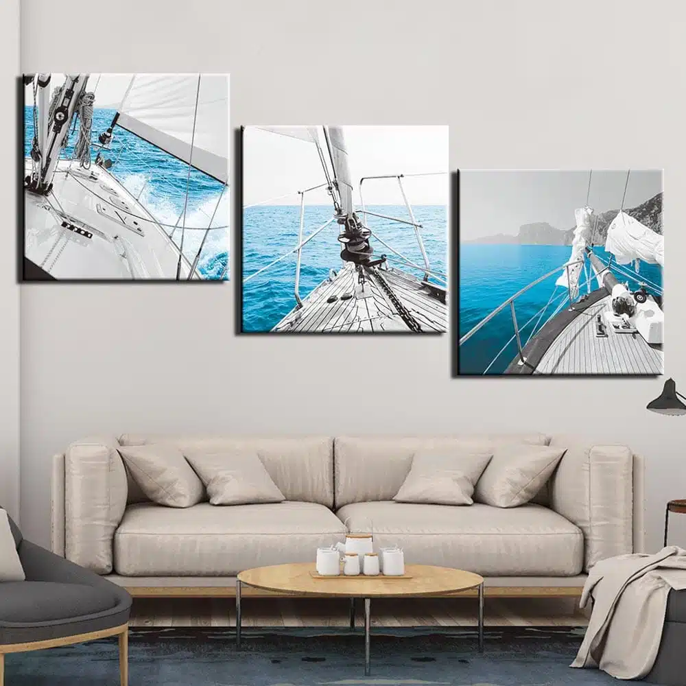 Sueña con aventuras, descubrimientos, paz y tranquilidad con este magnífico cuadro Velero en el mar. Un tríptico para el triple de fantasías.