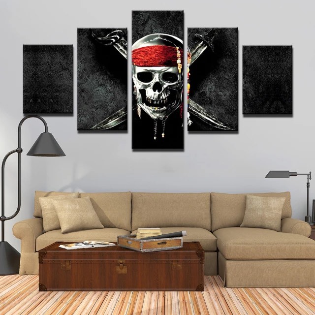 Este Cuadro Calavera pirata y espadas cruzadas detrás quedará muy bien en cualquier lugar de tu casa, con la ayuda de esta obra de arte, tu interior será otro.