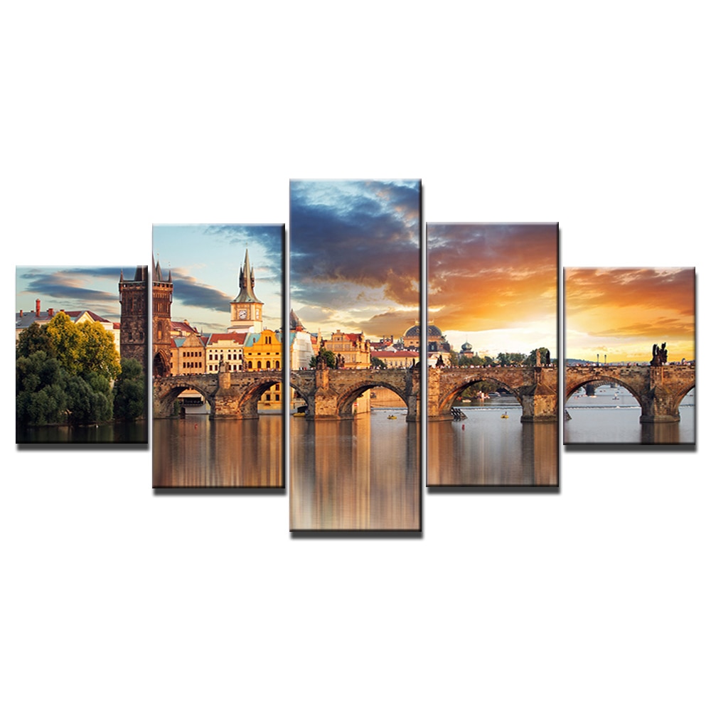 Una maravillosa vista del emblemático puente de la ciudad de Praga. Un cuadro de salón moderno que te dejará soñando.