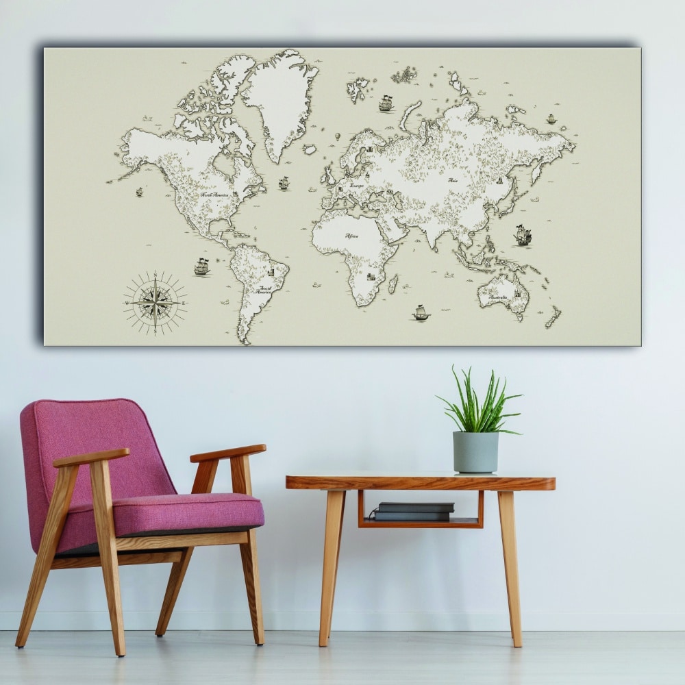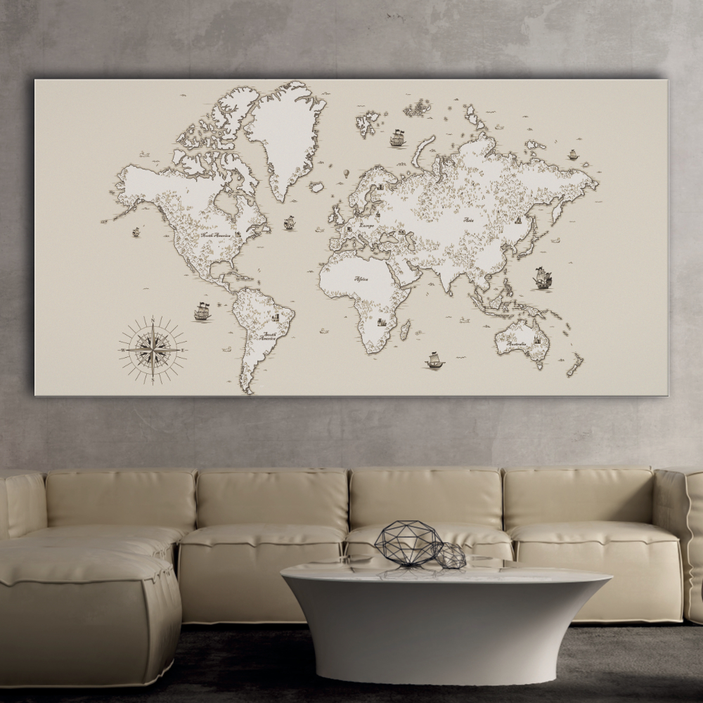 Ofrecemos este moderno cuadro de salón mapa de descubrimientos del mundo antiguo para aquellos que tienen una pasión por explorar el mundo. Este cuadro de salón moderno es ideal si tienes alma de viajero y te encanta compartir esa pasión con todos los que entran en tu casa.