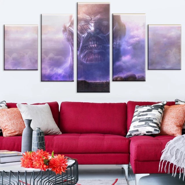 Este Cuadro Ataque de los Titanes Titán colosal en una tormenta no sólo es un cuadro moderno diferente, sino que además dará a tu casa una sensación especial gracias a sus colores llamativos.