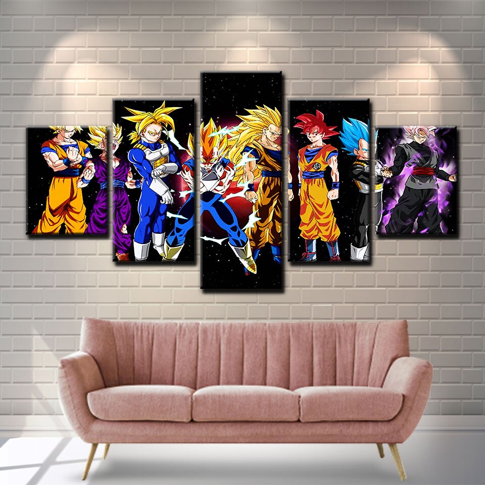 Son Goku, Goku Black, Vegeta… todos tus Super Sayians están reunidos en un cuadro de cinco partes para demostrar tu pasión por el manga. Cómprate ya este Cuadro personajes Dragon Ball.