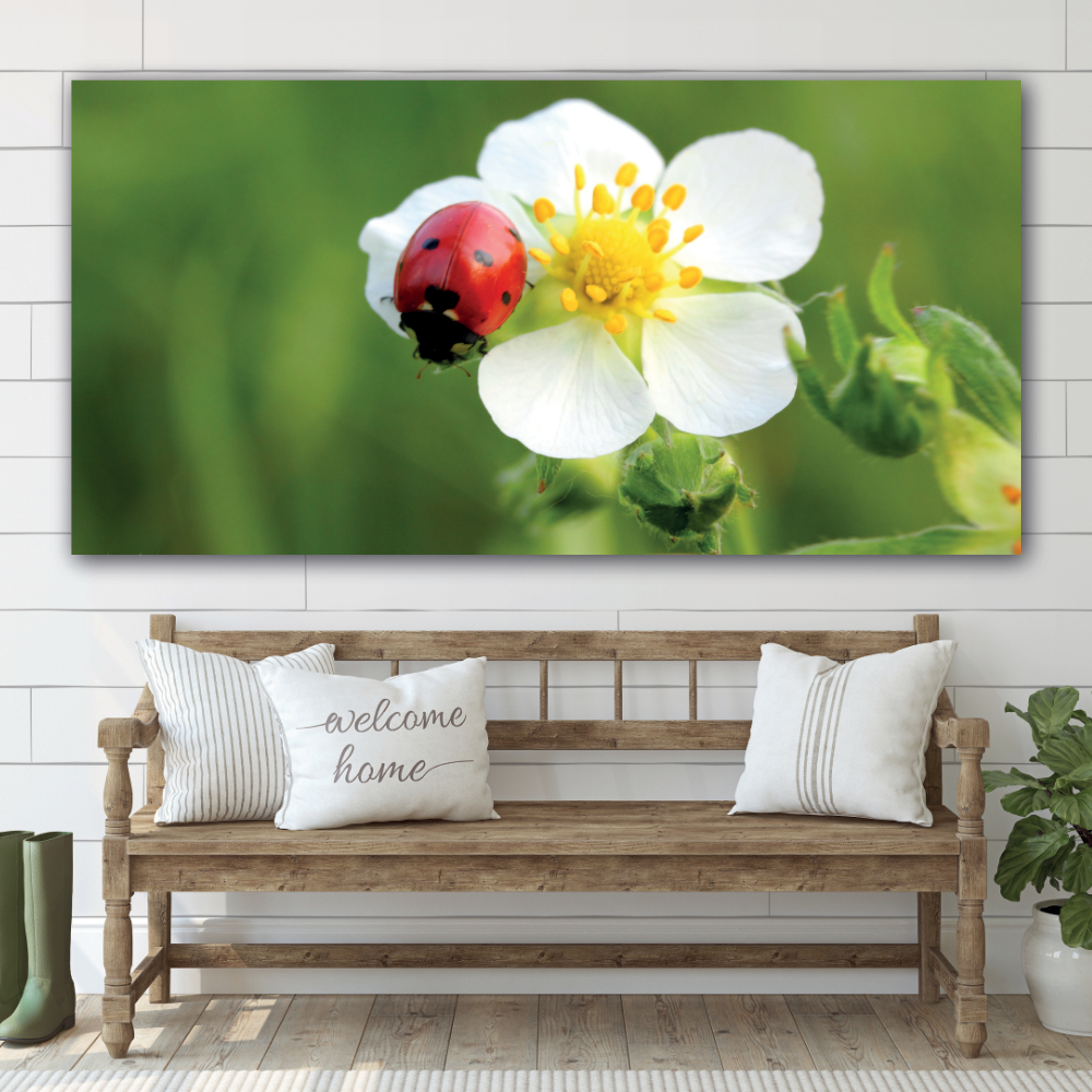 Es increíble lo hermosa e inventiva que puede ser la naturaleza. Esa es la impresión que uno tiene al ver este cuadro. Este hermoso juego de colores que acaba formando un cuadro de salón moderno único y original. Un gran estímulo para observar la naturaleza que nos rodea para encontrar tesoros ocultos. Este moderno cuadro para el salón La mariquita sobre una flor, es la prueba de que un animal tan pequeño puede por sí solo hacernos sonreír.