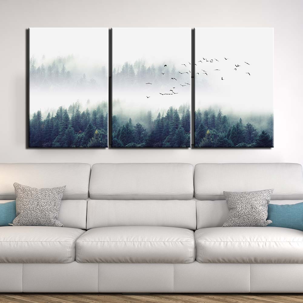 Este misterioso paisaje despierta la curiosidad. El contraste entre el blanco puro y el verde oscuro dará vida a tu decoración de interior.