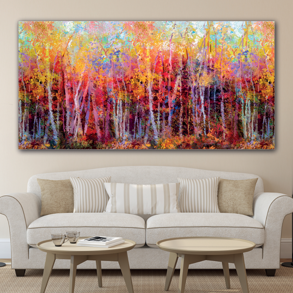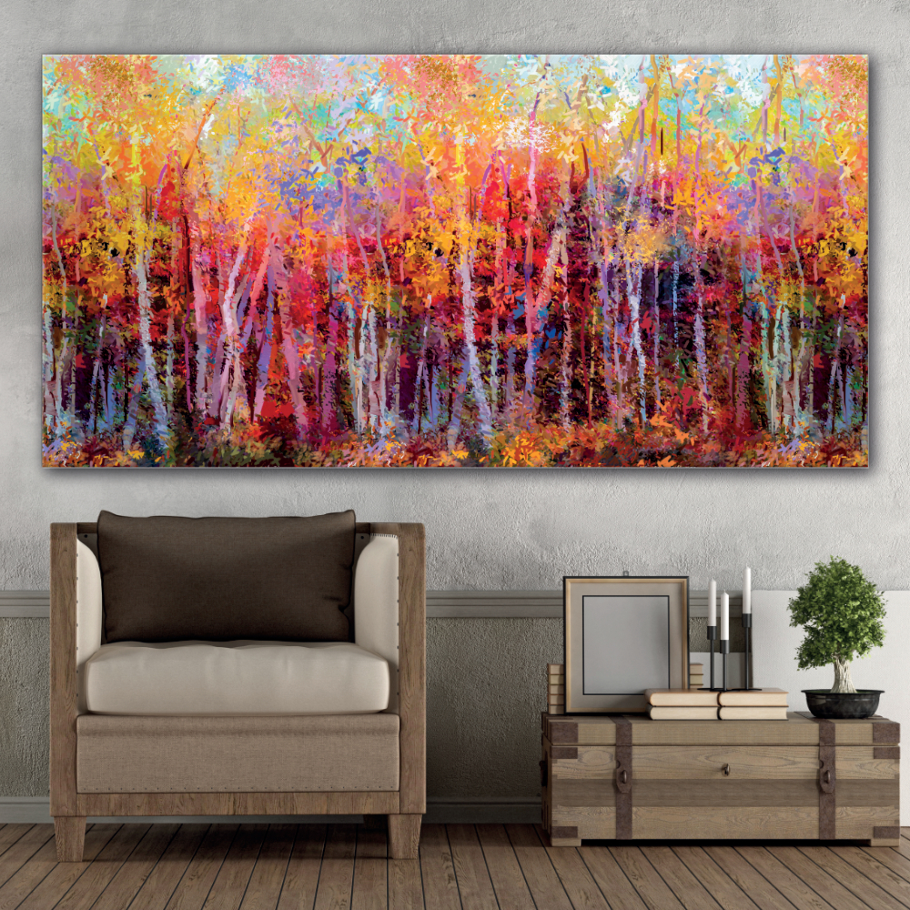Deja que los suaves tonos pastel y las pinceladas te inspiren y traigan un poco de otoño a tu interior colgando este hermoso Cuadro Bosque otoñal abstracto.