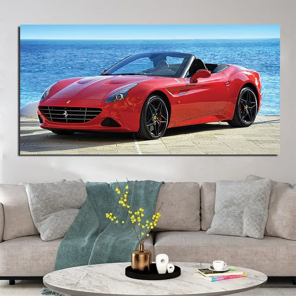El vibrante color rojo, la calidad superior del famoso superdeportivo California T de Ferrari, así como su elegancia, crean un ambiente alegre y atractivo.