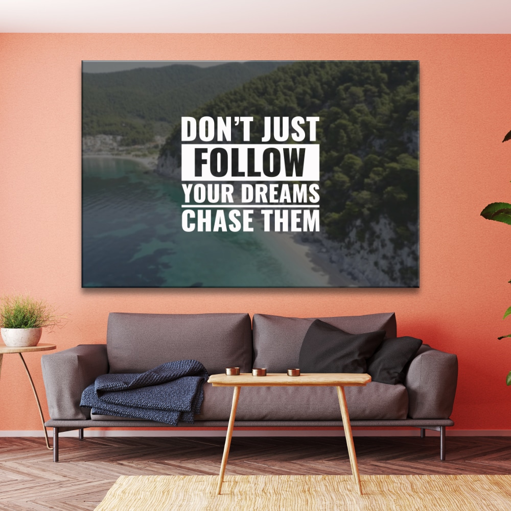 El objetivo número uno de esta tabla de salón motivacional moderna es que seas tú mismo, que luches por lo que sueñas, con una decoración así, tu psicología siempre será buena.