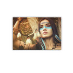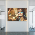 Colores relajantes, una mujer misteriosa, una suave niebla y plumas. Este moderno cuadro para el salón te evitará malos sueños y dejará espacio para la belleza de la imaginación.
