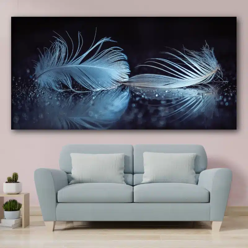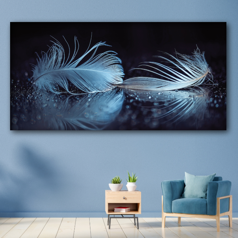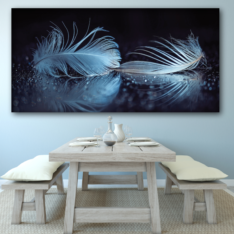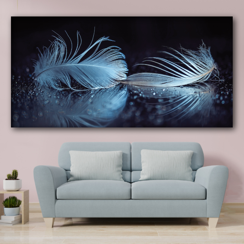 Es importante que tu casa sea un remanso de tranquilidad, así que piensa en tu decoración en ese sentido. Colgar esta sublime foto de primer plano de plumas le aportará al instante un mensaje de paz y dulzura.